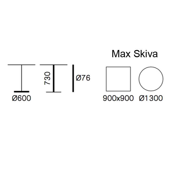 För skivor upp till 90x90/ø130cm reglerbara fötter